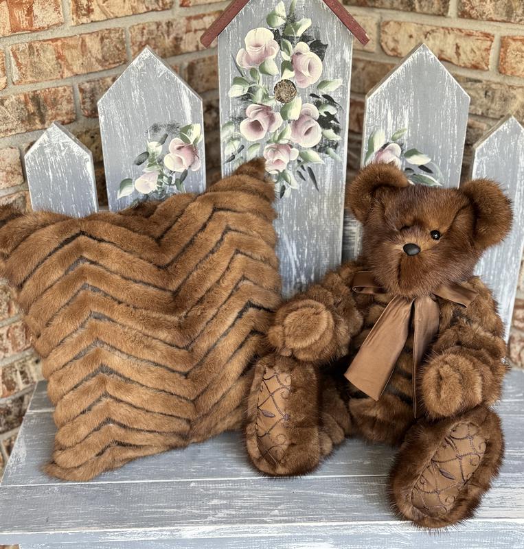 I did a lot of research before deciding to trust Rhonda with my late mother's fur coats. I loved the details she put into her bears. I mailed one mink and one rabbit leopard print coat. The rabbit was very worn and loved by my mother. I was thrilled that Rhonda could make 5 mink bears with leopard shawls and one leopard bear. Rhonda is amazing at what she does. The bears have surpassed my expectations and I am forever grateful. Thank you so much for my 6 heirloom bears that will always be treasured.